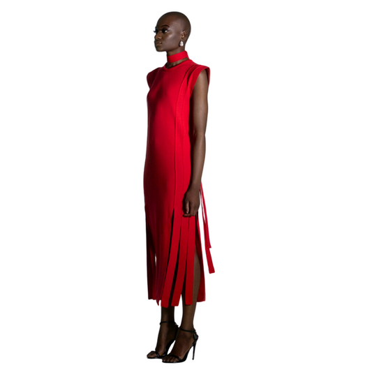 Fringe Midi Dress - Red