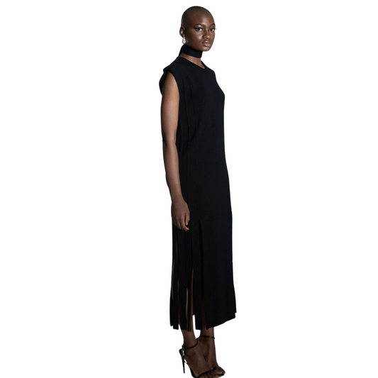 Fringe Midi Dress - Black